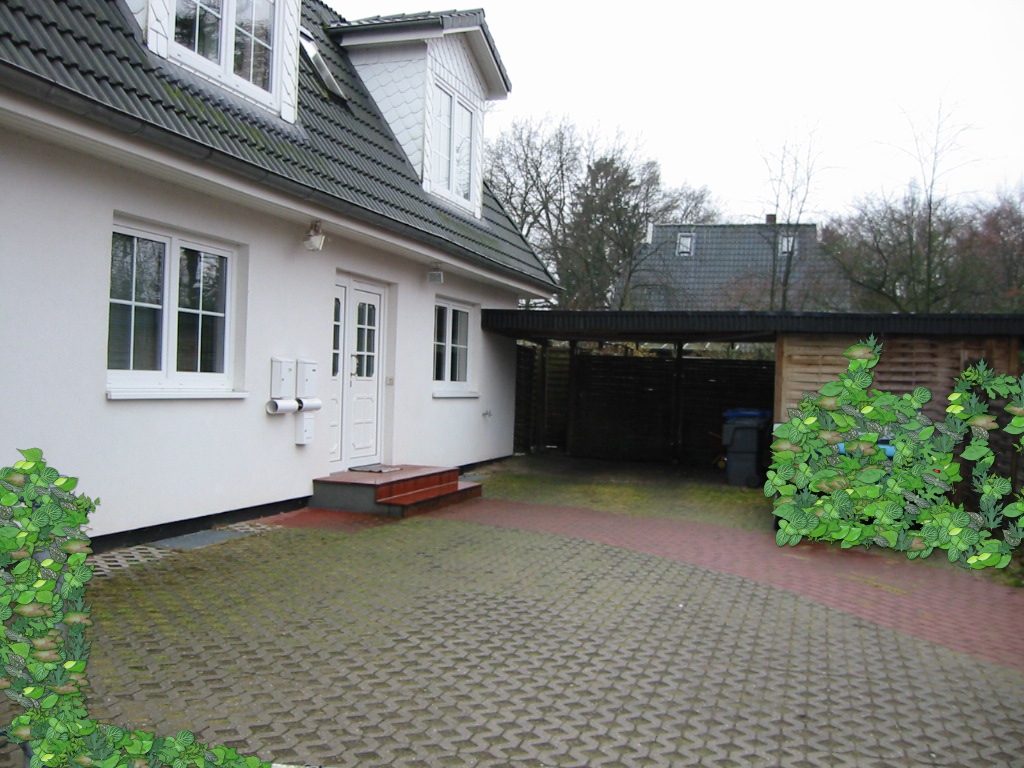 Eine sehr kl. Gartengrillecke dazu aber immerhin im Sommer . . . . . . besser als Nichts. Dazu Geräte und.- Fahrradschuppen und davor einen geschützten PkW. Stellplatz 15.- mon.-auf gesichertem Grundstück. Das alles ist für Euch schon hergerichtet.