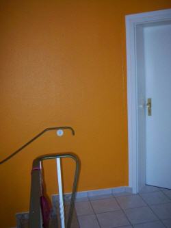 == Ein großzügiger Empfangsvorraum == Nun ist alles neu, hell gestrichen . . . . . . Der Vorflur, die Empore dieser elegant geschnittenen Wohnung verfügt über ein großes Veluxfenster. Eine halbgewendelt Treppe führt nach oben. Pflegeleicht ertellt, aus hellen cremfarbigen Aglo Marmor. Der helle Emporenvorflur läßt viel Licht in den Eingangsbereich fließen. Allerdings ist Dieses womöglich nichts für ältere Damnen & Herren mit schwächelnden Hüften. Fittnes ist auf Dauer womöglich angesagt.